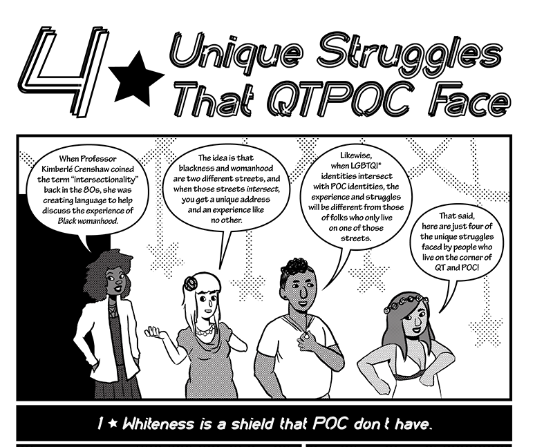 [Image: 4 unique struggles that QTPOC face. Illustration by Joamette Gil]