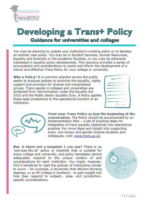 Public sector and third sector organisations are welcome to use these resources for non-commercial purposes, such as delivering in-house awareness sessions or training. We ask that you cite and credit TransEDU, Dr Matson Lawrence and Dr Stephanie Mckendry when using or reproducing these resources. If you would like to use the resources for other purposes not listed above, please contact Matson (matson.lawrence@strath.ac.uk) to discuss further.